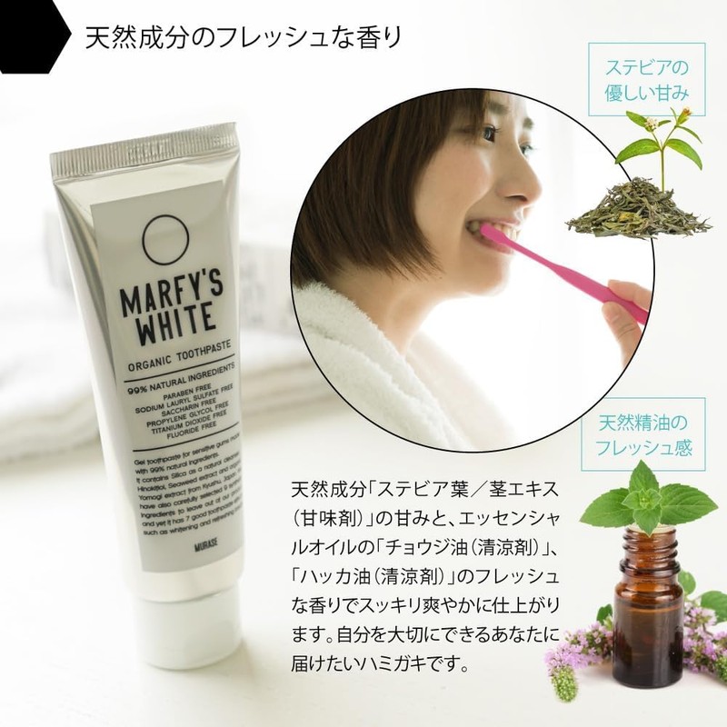 MARFY'S WHITE Toothpaste, Organic, Additive-free, Whitening, 3.2 oz (90 g), Made in Japan