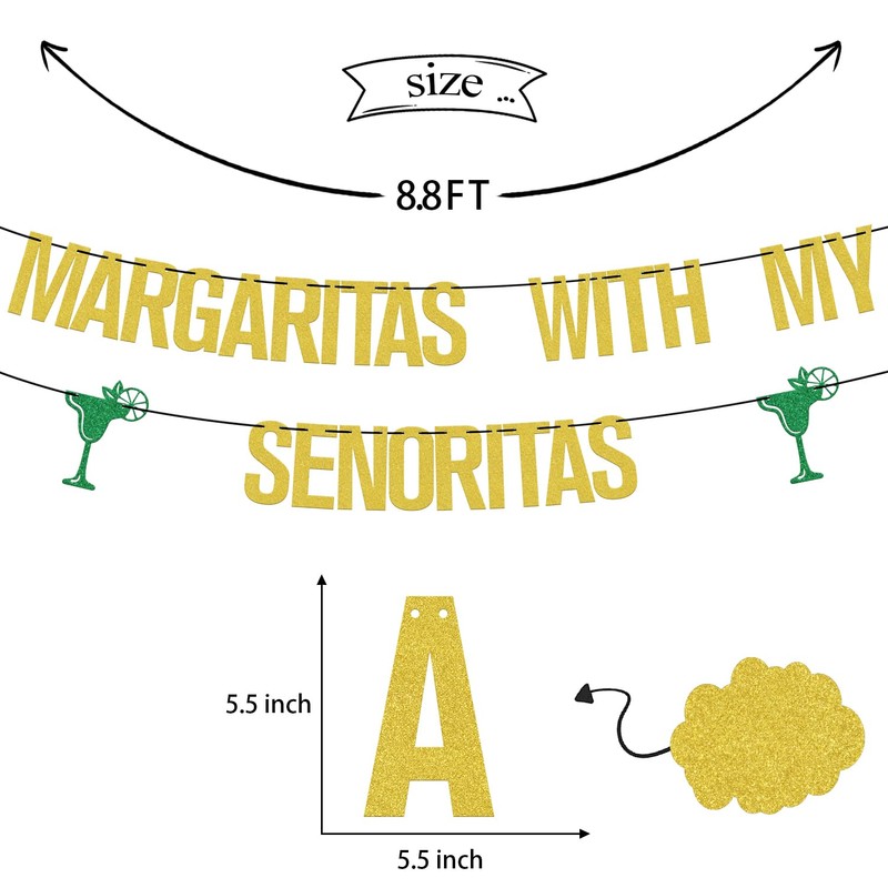 Margaritas with My Señoritas Banner Gold Green Glitter, Mexican Fiesta Banner, Fiesta Banner, Taco Bar Decorations, Loteria Party Decorations, Cinco De Mayo, Mexican Themed Party Decorations