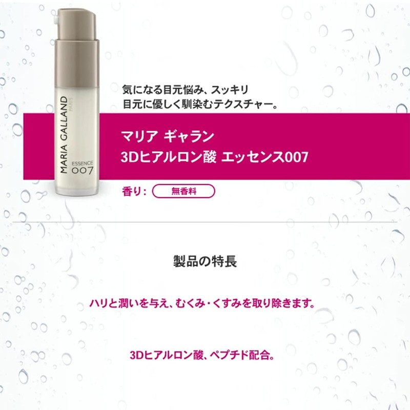 - Comes with a limited gift for those who want to purchase in Style! This is a short-term concentrated treatment serum from the long-established French salon brand "Maria Gallant." Essence 007 is an aging sign for your eyes. For eye dryness, wrinkles, dullness, and swelling. 5ml