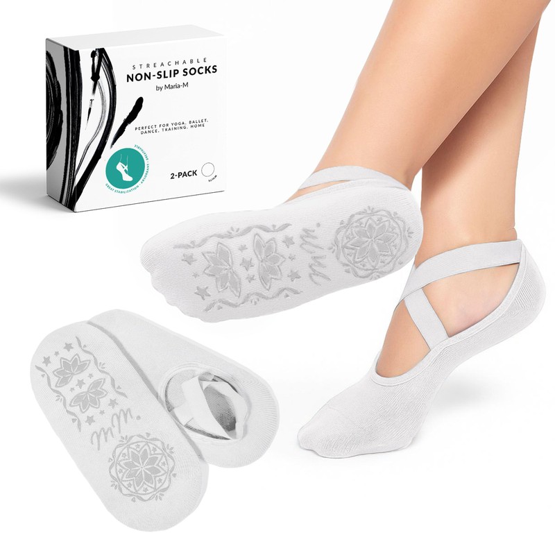 Maria-M Yoga Socks for Women, Non-Slip Grip & Grip Straps, Socks for Pilates, Yoga, Pure Barre, Ballet (US, Alpha, One Size, Regular, Regular, 2, White)