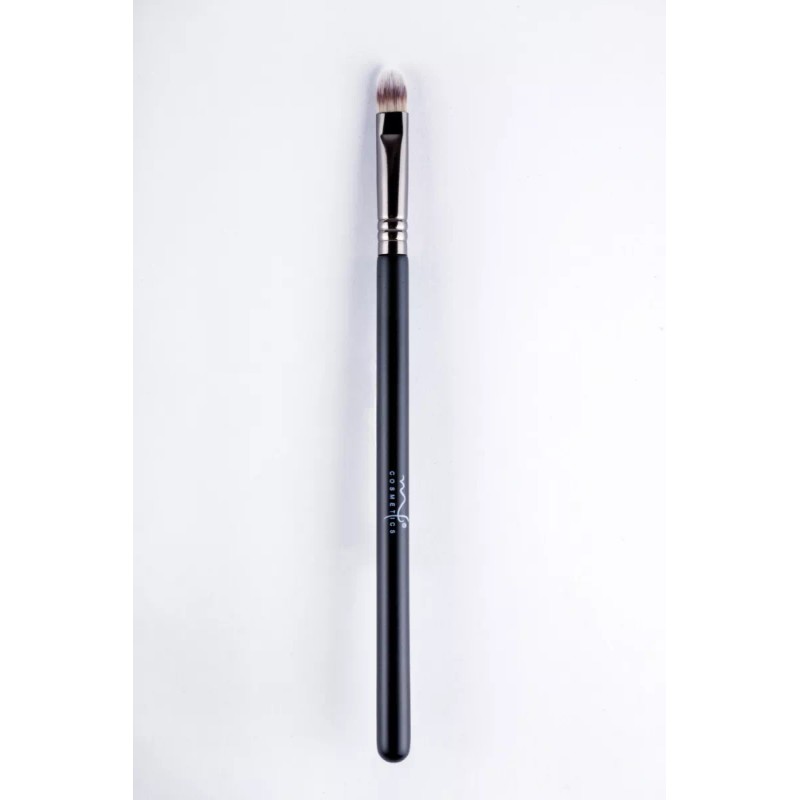 Brocha pequeña de forma plana con punta redonda. Aplica productos líquidos y en crema de manera precisa y concentrada en el rostro y ojos.
