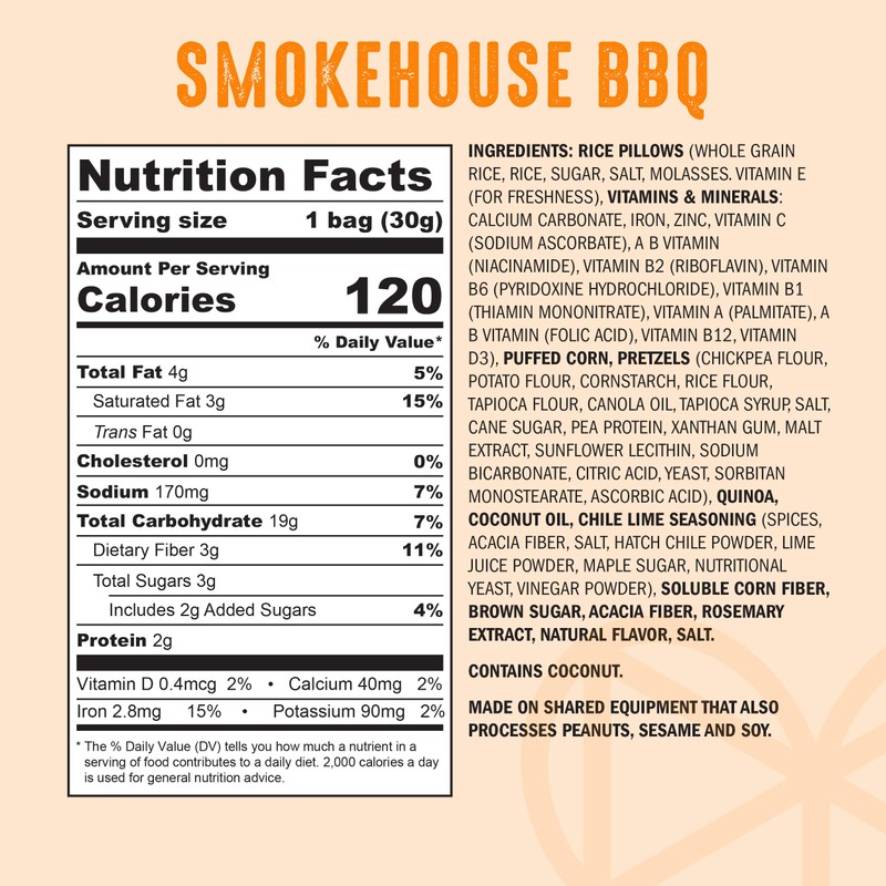- WHOLE GRAIN & GLUTEN-FREE: Our whole grain ingredients include crisped quinoa, whole-kernel puffed corn, and whole grain corn, oat and rice flour. No gluten, soy, sugar alcohols, or anything artificial. We use no wheat, barley, rye, kamut or any ingredient derived from these grains.