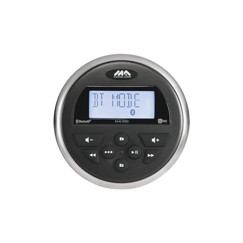 Marine Audio MA100 AM/FM/USB Compact Bluetooth Stereo with App Control; IPX6 Waterproof; AM/FM Tuner; Daylight-readable Segmented LCD Display; LED Backlit Buttons; UV Resistant; 160W (Renewed)