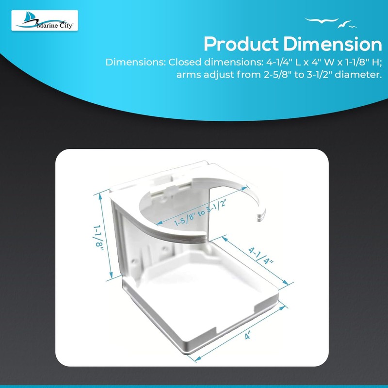 - Package Includes Pack of 8 Marine City White ABC Plastic Adjustable Arms Folding Cup Drink Holder.