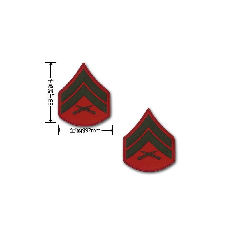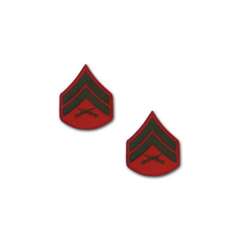 Marine Corps Chevron: Corporal - green embroidered on red, male