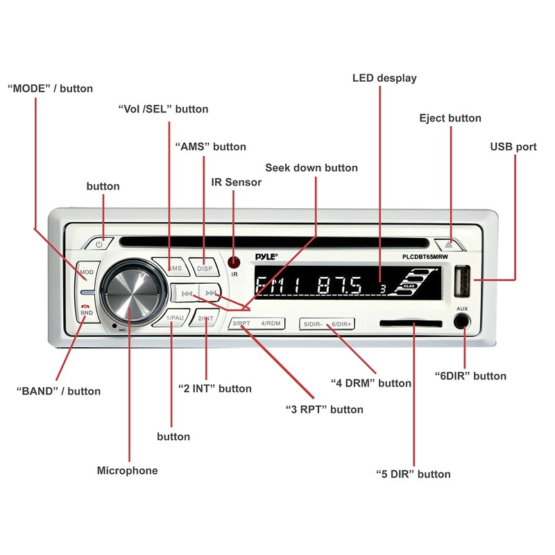 - STEREO HEADUNIT RECEIVER: The head unit receiver is pack with single DIN universal size standard at 200-watt power peak that supports MP3, WMA, and CD, CD-R, CD-RW disc compatibility. Ideal for boat, marine watercraft, automobile and off-road vehicle