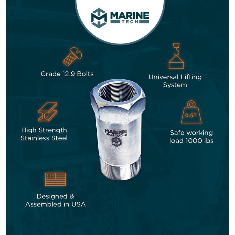 Marine Tech Tools Evinrude E-TEC G2 Lifting Adapter 357667 (AMT0070), Evinrude Outboard Lifting Tool, Threads on Evinrude E-TEC G2 Flywheels, Fits Universal Outboard Lifting Ring (AMT0022)