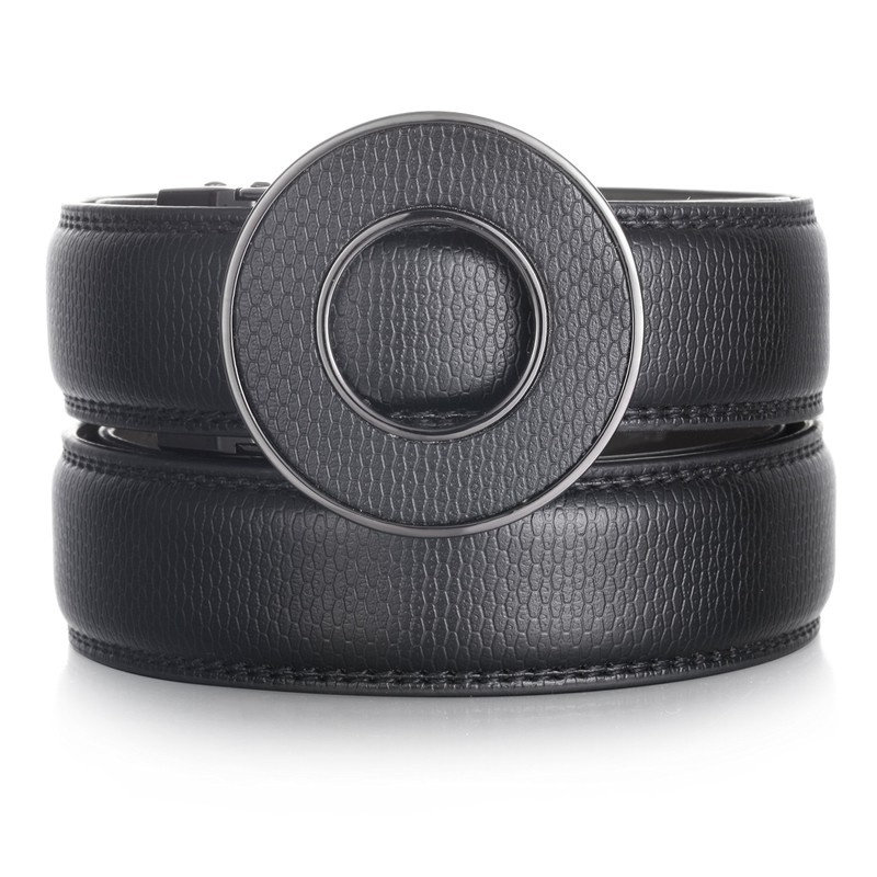 Marino - Cinturón de vestir de piel auténtica con hebilla automática, para hombre, en una elegante caja de regalo, Circlet Classic - Negro, Ajustabe de 28" to 44" Cintura