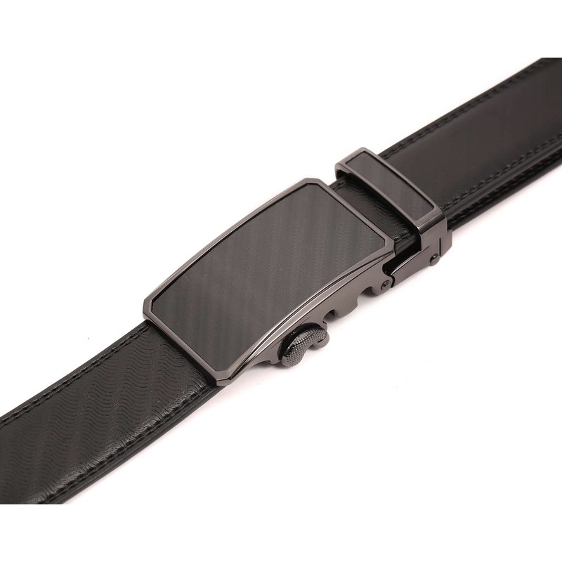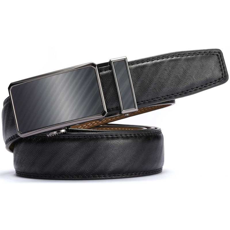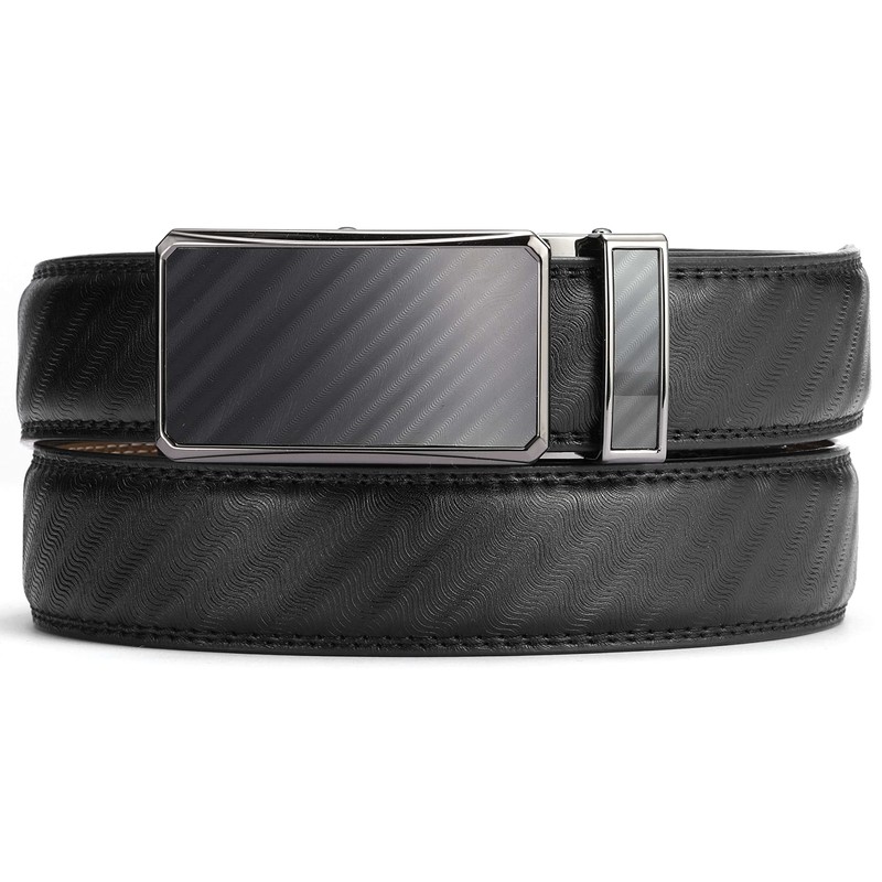 Marino Men’s Genuine Leather Ratchet Dress Belt With Automatic Buckle, Enclosed in an Elegant Gift Box - Select Striped - Deep Charcoal - Adjustable from 48" to 64" Waist