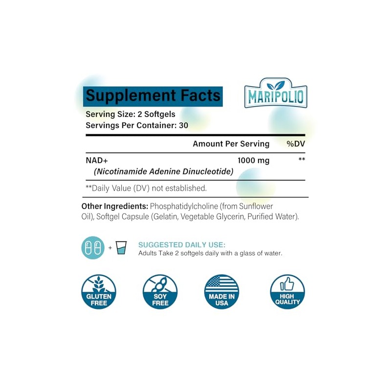 Maripolio- Suplemento liposmico NAD 1000 mg Pontecy NAD ms alto Absorcin mxima Suplemento NAD puro Es