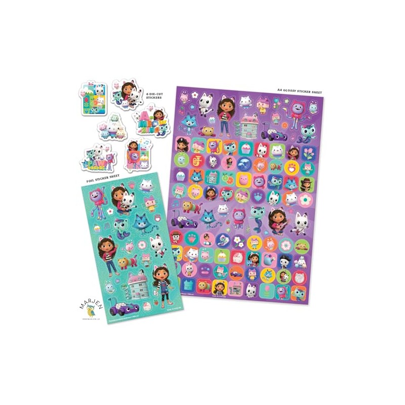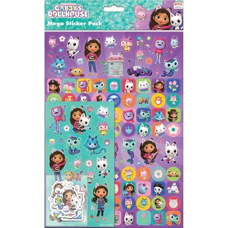 - Gabby's Dollhouse Mega Sticker Pack - With a total of 150 stickers included in the pack, kids have a wide variety of options to choose from,featuring characters and scenes from Gabby's Dollhouse.