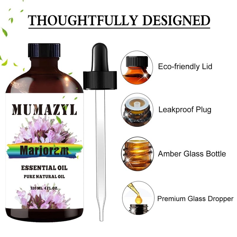 - Featured Glass Bottle & Dropper: Each Marjoram essential oil is bottled in 4 Fl Oz 120ML amber glass bottle to help keep the Marjoram oil lasting. It also comes with a premium quality glass dropper to help you get the exact amount you want.