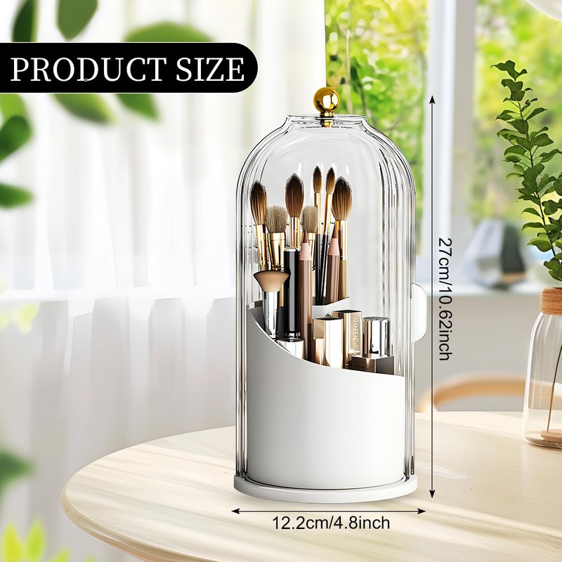 Marjoramy Organiser, 360° Rotating Cosmetic Organiser, Brush Holder Cosmetic with Lid, Transparent, Dustproof, Makeup Brush Organiser with Lid for Dressing Table, Bathroom, Bedroom