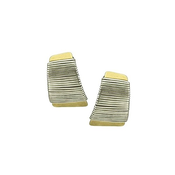 - A sloping tapered rectangle in brass with neatly wrapped with silver wire all with a comfortable clip on backing.
