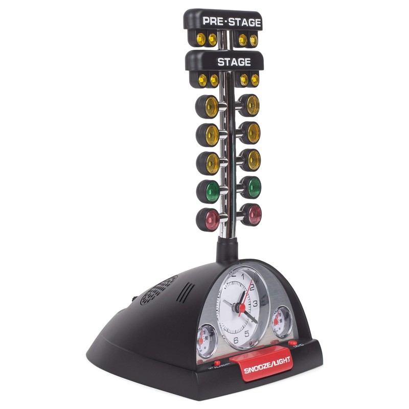 - Drag Racing Winning Alarm Clock features a replica of the "Christmas tree" from the drag strip, providing a pulsating wake up call