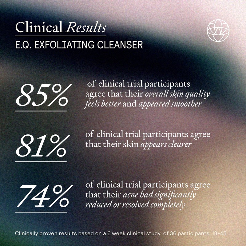 Gently cleanse and renew skin with our efficacious, clinically-tested and balanced E.Q. Exfoliating Cleanser, designed to penetrate the skin, reduce redness and remove makeup and impurities without irritating the skin barrier. This innovative formula combines the power of plant flavonoids, including Epigallocatechin Gallate (EGCG) and Quercetin, delivered through our cutting-edge Transdermal Flavosomes XDF Delivery System.