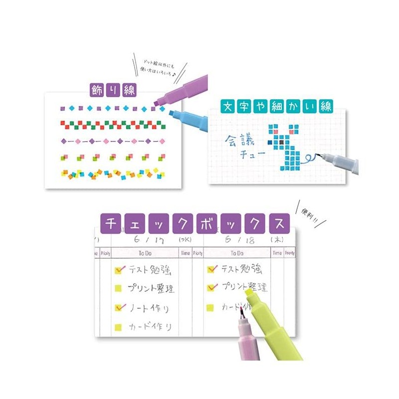 Cute stationery series that makes everyday fun with this dotted pen dotted pen dotted pen pen has a square nib. Press lightly like a stamp. The other side has a thin tip that makes it easy to draw letters. There are various colors to match your favorites. Color lineup: GY, BK, BUR, BE, GR (Green), MT, and LBL. blue), BL (blue) Violet, PK (Pink), RD (Red), OR (Orange), YE (Yellow) Size: Approx. 6.1 x 0.4 x 0.4 inches (156 x 10 x 10 mm).