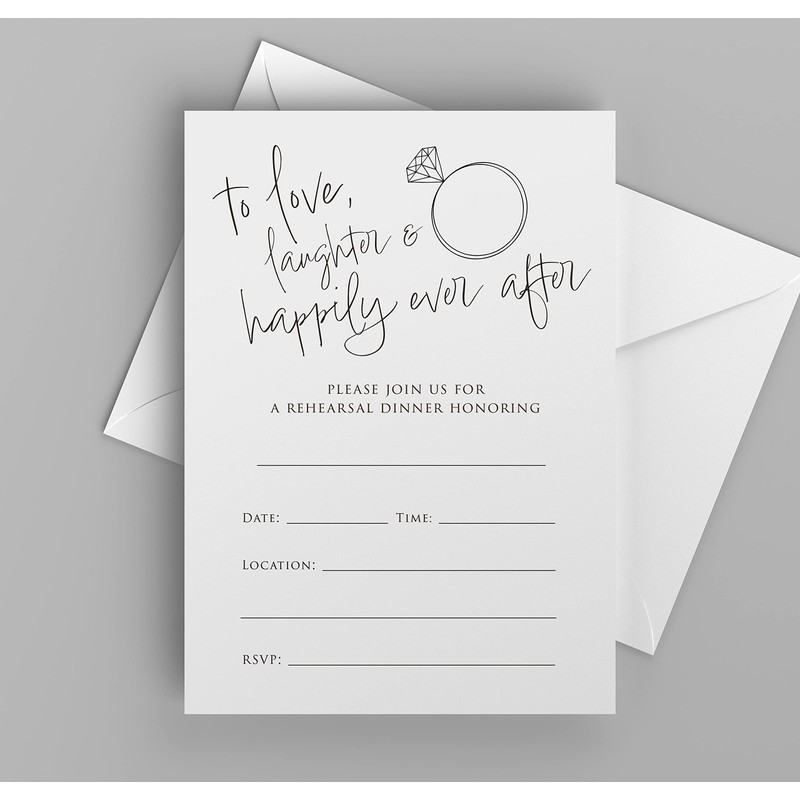- Design: Black and white minimalist design is trendy and classy, perfect for rehearsal dinner invitations!