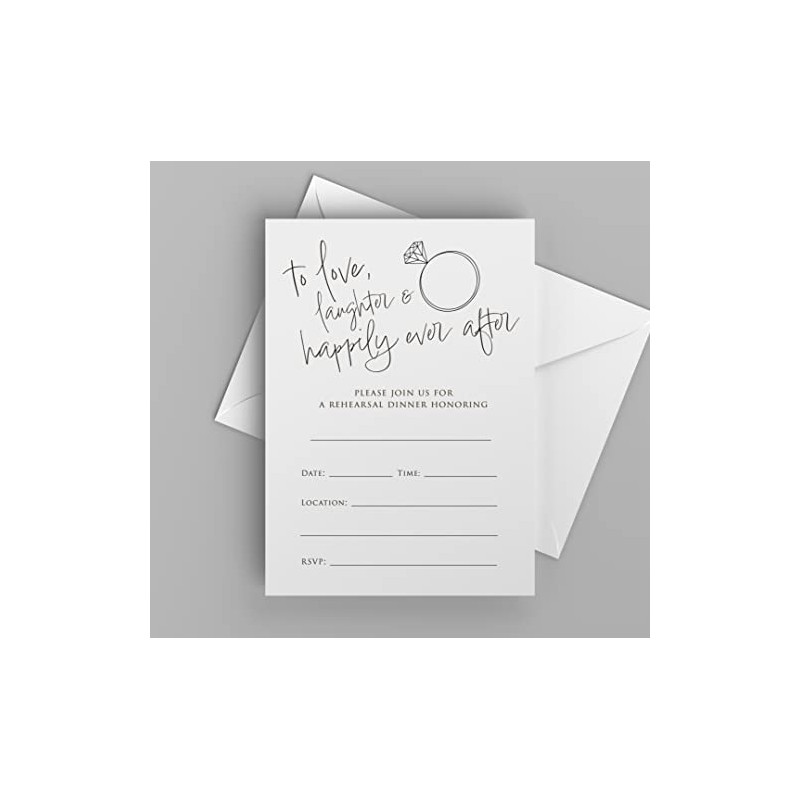 Market On Mainstreet Rehearsal Dinner Invitations w/Envelopes, 25 Cards and Envelopes, Made in the USA (Black and White Minimalist)