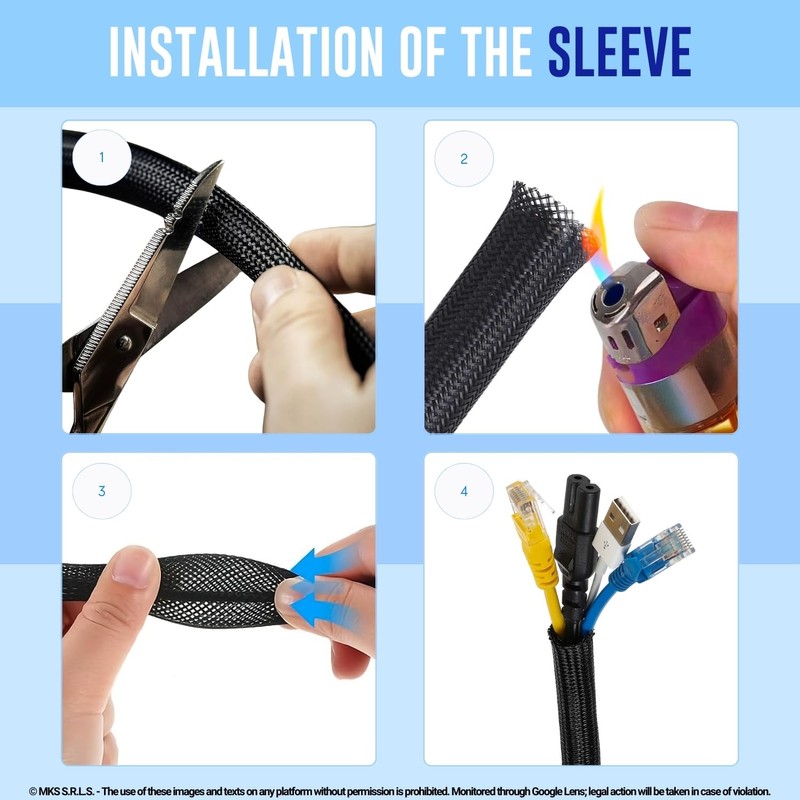 - ⚠️✂️🔥 IMPORTANT NOTE: To avoid fraying, we recommend cutting the braided cable conduit with a hot knife. Alternatively, you can carefully burn the ends with a heat source, such as the flame of a lighter.