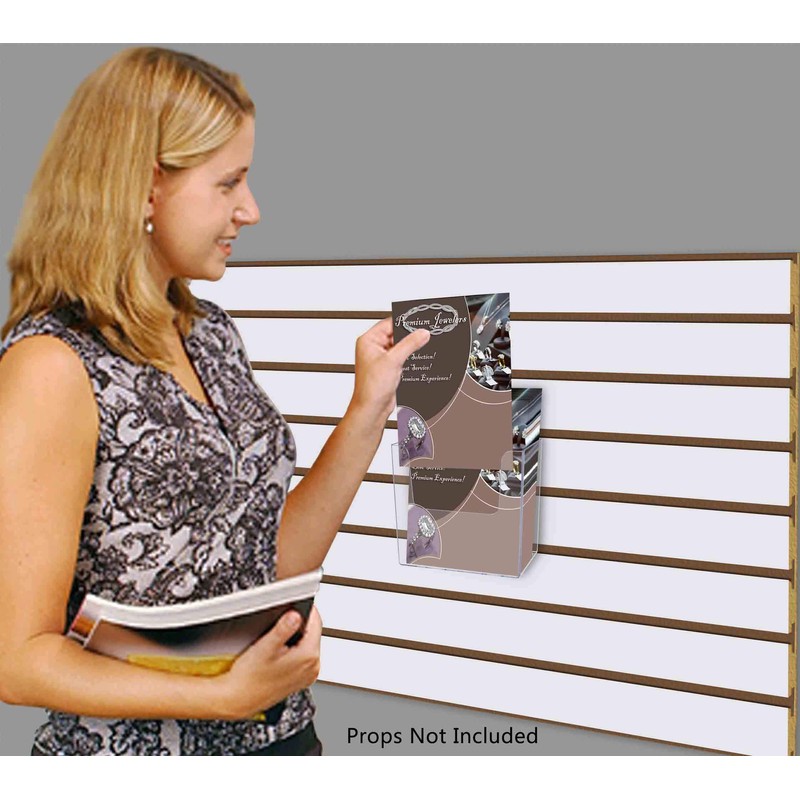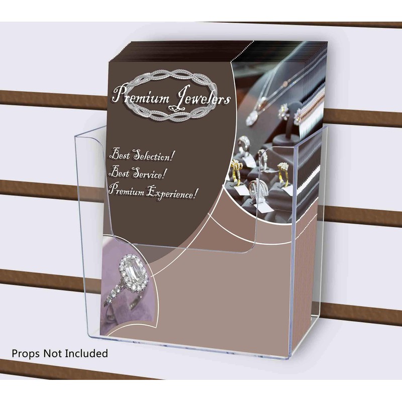 - With this clear holder, your office or store slotted wall becomes an advertising tool! Many businesses find these marketing aids useful to spread the word about their upcoming promotions, products, services and events. Elegantly showcase attraction pamphlets or menus while saving space and keeping areas looking professional, clutter free and organized.
