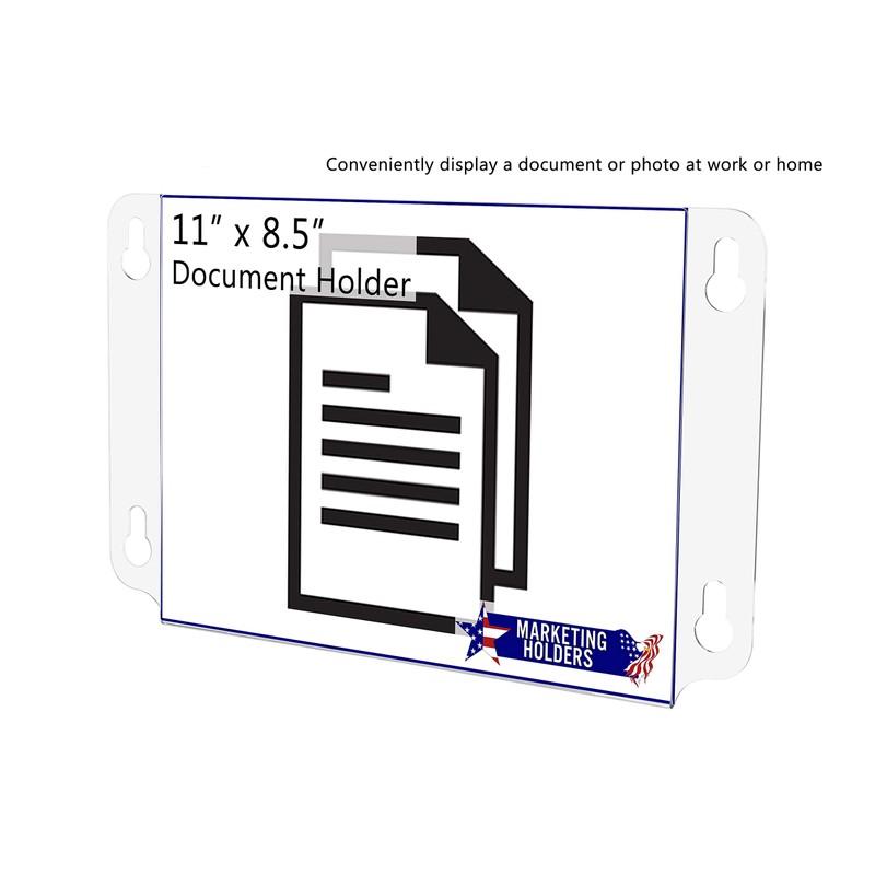 - 11"W x 8.5"H Window Sign Holder Double Sided with Suction Cups Product Features: Holds 11"W x 8.5"H literature Overall Dimensions: 13.5"W x 8.5"H