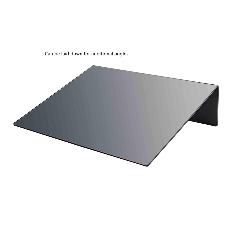 - Marketing Holders slant back plexiglass mirror is a safer alternative to glass mirrors. The frameless mirror has laser polished smooth edges for added safety. The sturdy slant back design allows the mirror to be placed on countertops and is perfect for smaller spaces while still allowing maximum viewability.
