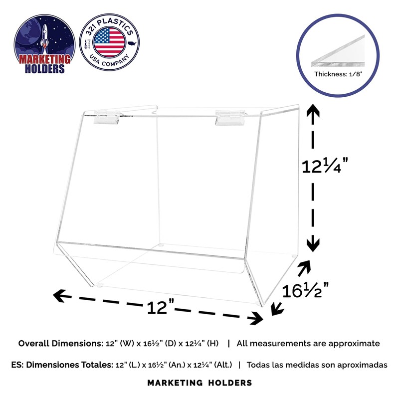- Overall Dimensions: 12"W x 16.5”D x 12.25”H. *All sizes are approximate Freestanding countertop bread bin for bakeries, pastry shops or restaurants The hinged lid makes refilling quick and easy Proudly made with premium high quality acrylic