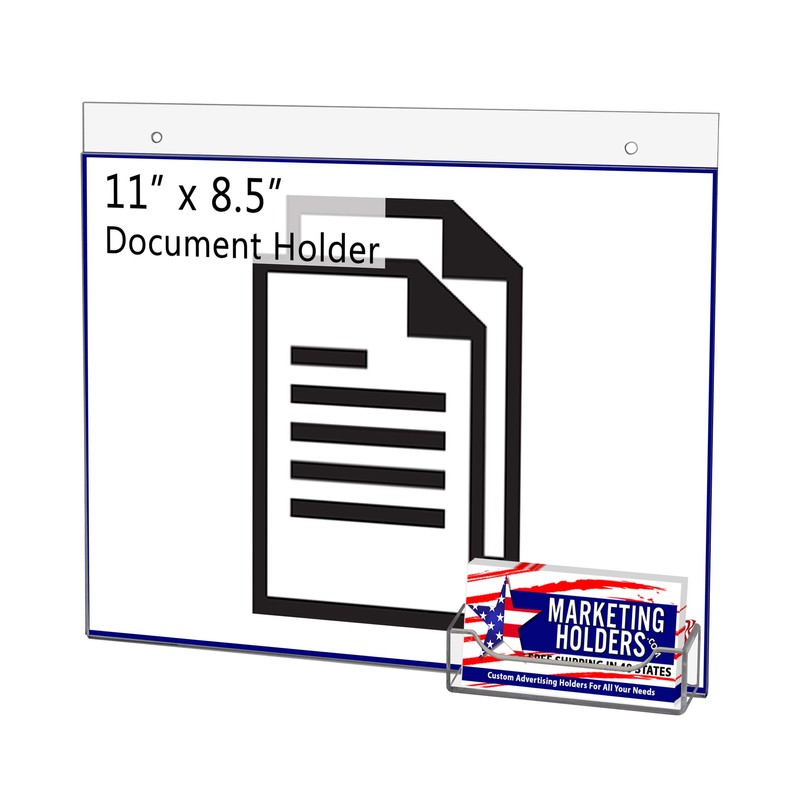 Marketing Holders 2 Pack Wall Sign Holder for 11 x 8.5 Inch Paper and 3.5" x 2" Business Cards at Theme Parks and Museums Clear Acrylic with 2 Pre Drilled Holes and Hanging Hardware