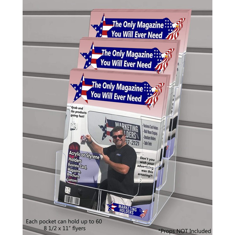Marketing Holders 3 Tier Stand Flyer Take One Holder Slatwall Mount Value Pack of 4 Organizer Hand Out Display Brochure Pamphlet Rack Maps Menu Trifold