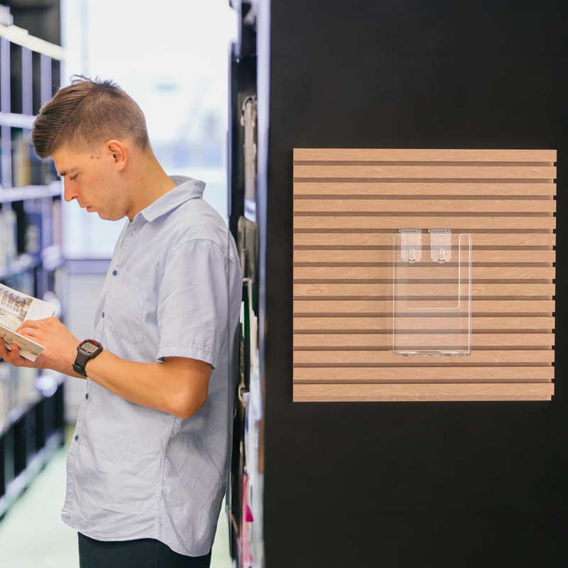 - Perfect single pocket display solution for trifold brochures, rack cards and menus These slatwall literature holders are designed for standard slatwalls. Will not fit on custom or metal slatwalls. Proudly made with premium high quality materials Marketing Holders literature holder provides a simple yet effective slatwall display for promotional literature, pamphlets, brochures, booklets and flyers. With this clear holder, your office or store slot wall becomes an advertising tool!