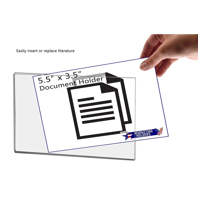 Marketing Holders 5.5"w x 3.5"h Sign Holder Frame Double Sided Tape Wall Mount Ad Frame No Holes Strips Horizontal Handout License Door Name Plate Advertisement Prices Hours of Operation Event