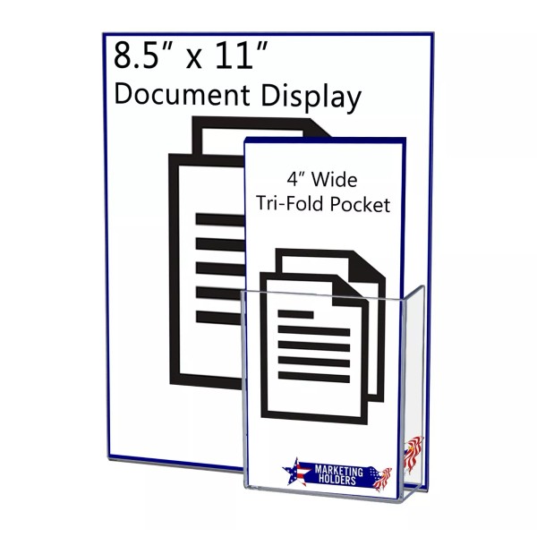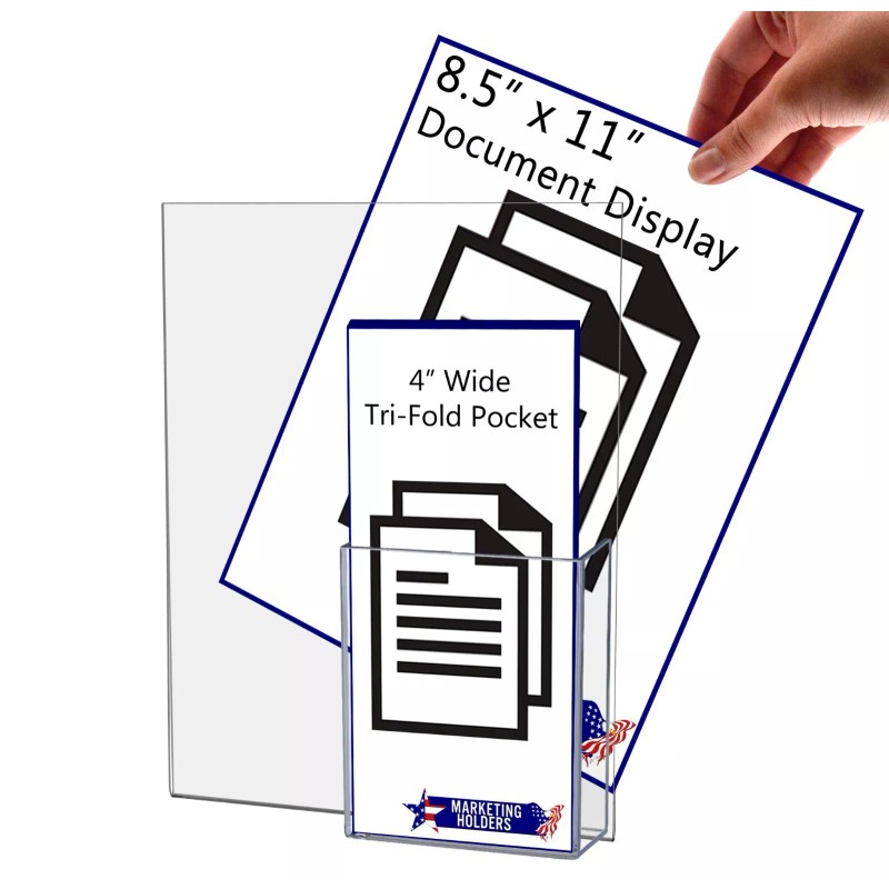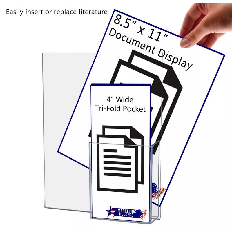 - Holds 8.5"W x 11"H literature and 4"W trifold brochures