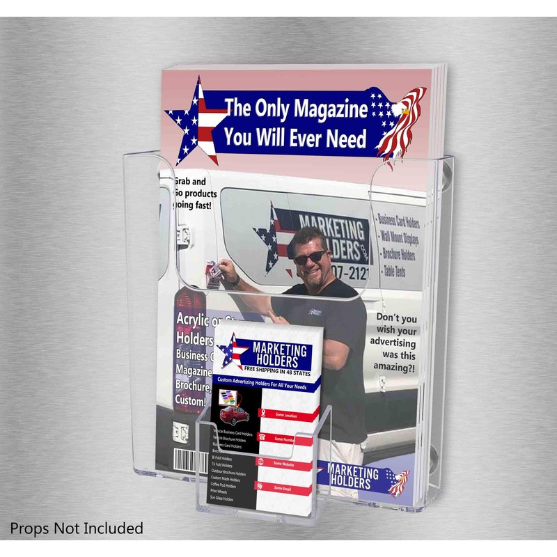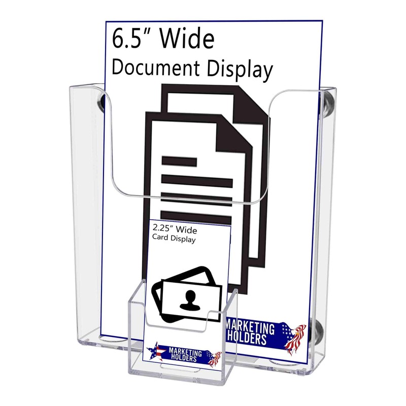 6 1/2”W Brochure Display- Wall Mount w/Magnets & Attached Vertical Business Card Holder