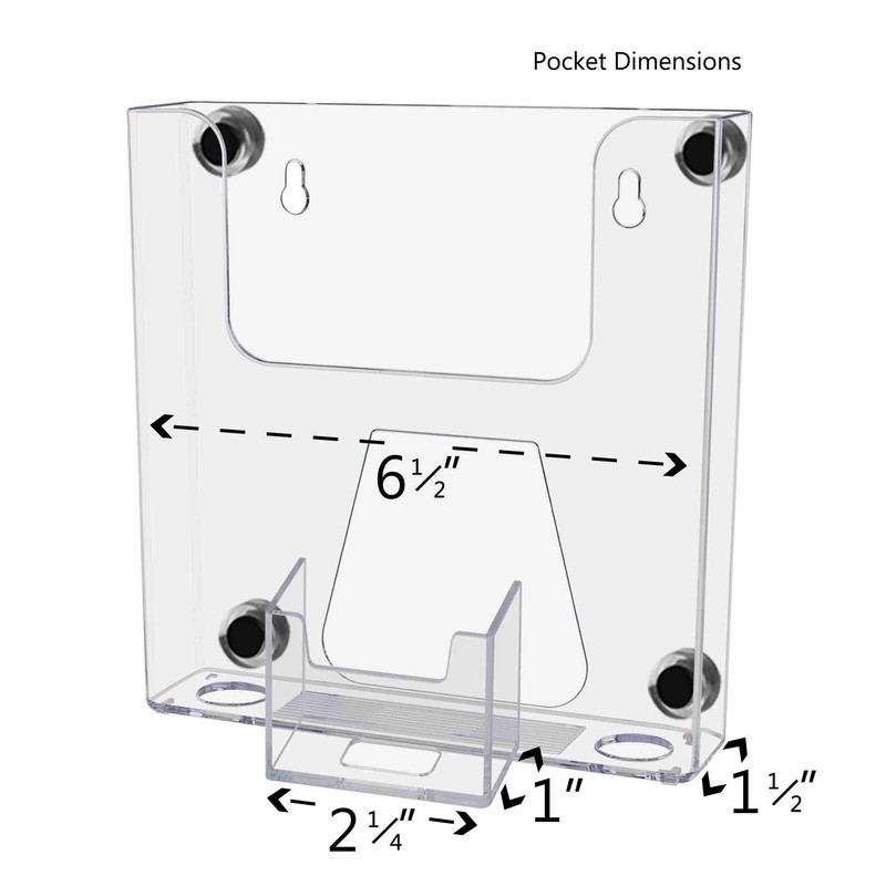 This clear, acrylic brochure holder is the ideal solution to display and dispense brochure size advertisements or other 6 1/2”W promotional literature. Designed with versatility in mind, the brochure holder comes with 4 magnets for simple wall, locker room or cubicle mounting or it can be conveniently placed on desks, counters, tables or virtually any other flat surface.