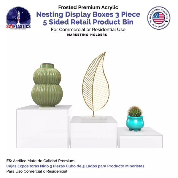 Frosted Nesting Display Boxes 3 Piece Retail Product Bin 5 Sided Cube