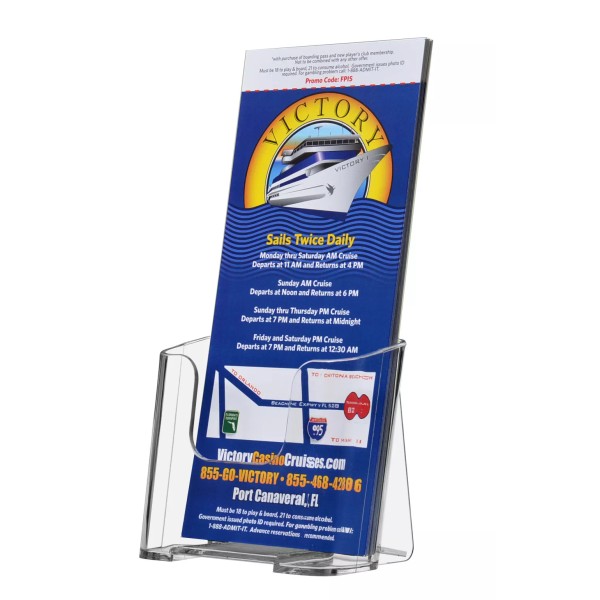 The organizers are made of durable clear plastic such as acrylic, plexiglass, lucite and PETG polycarbonate materials. The brochure holder features a clear see-through pocket that offers a view of your printed media. These display holders are ideal for placement in doctor offices, hotels, amusement parks, government and business buildings, community centers, welcome centers or travel agencies. This stand is durable for use at colleges and universities, convention centers, restaurants, sports stadiums across the USA.