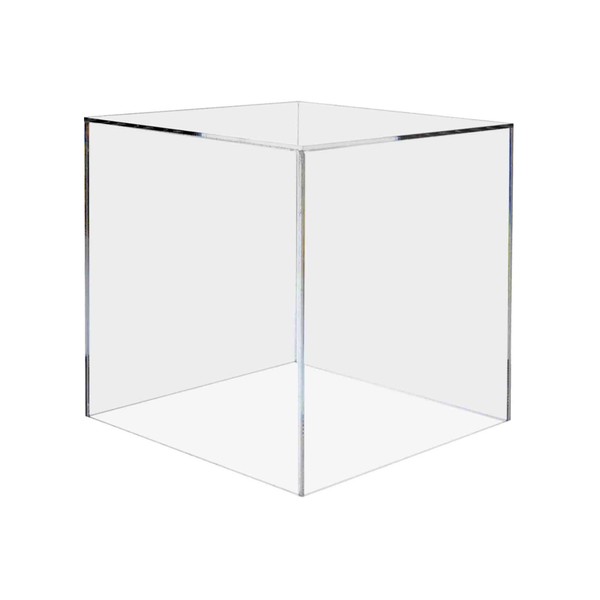 Marketing Holders White 5 Sided 4"w x 4"h x 4"d Platform Display Box Art Sculpture Pedestal Collectible Cube Cover Trophy Trinket Acrylic Showcase Stand Expo Event Wedding Reception