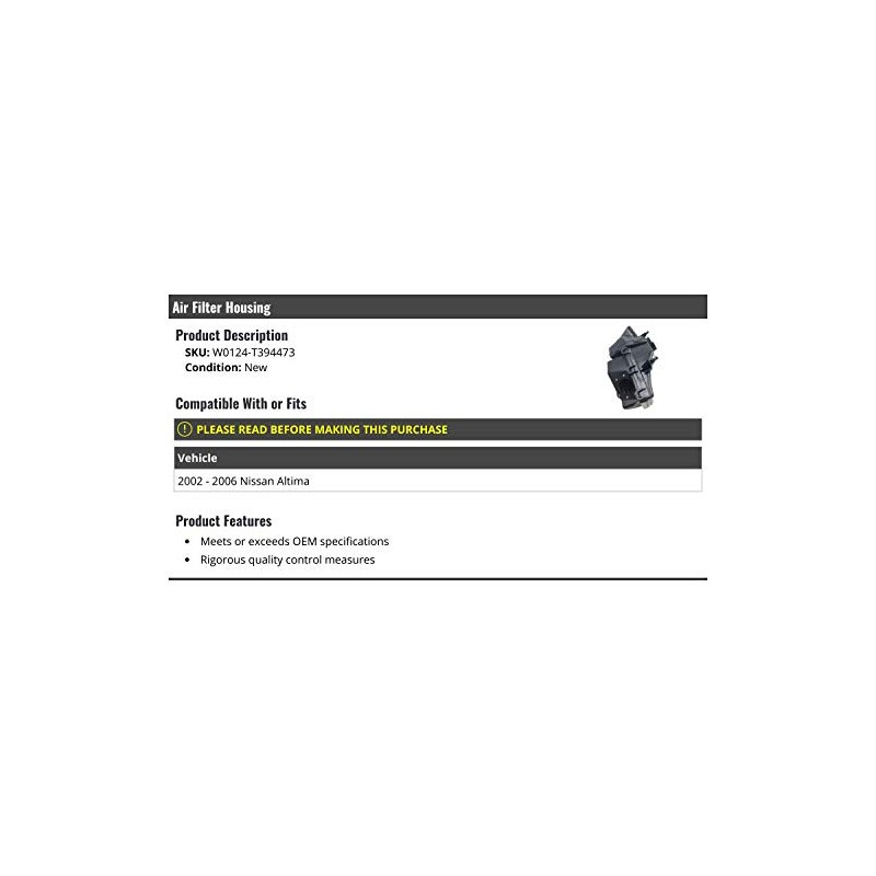 Marketplace Auto Parts Air Filter Housing - Compatible with 2002-2006 Nissan Altima