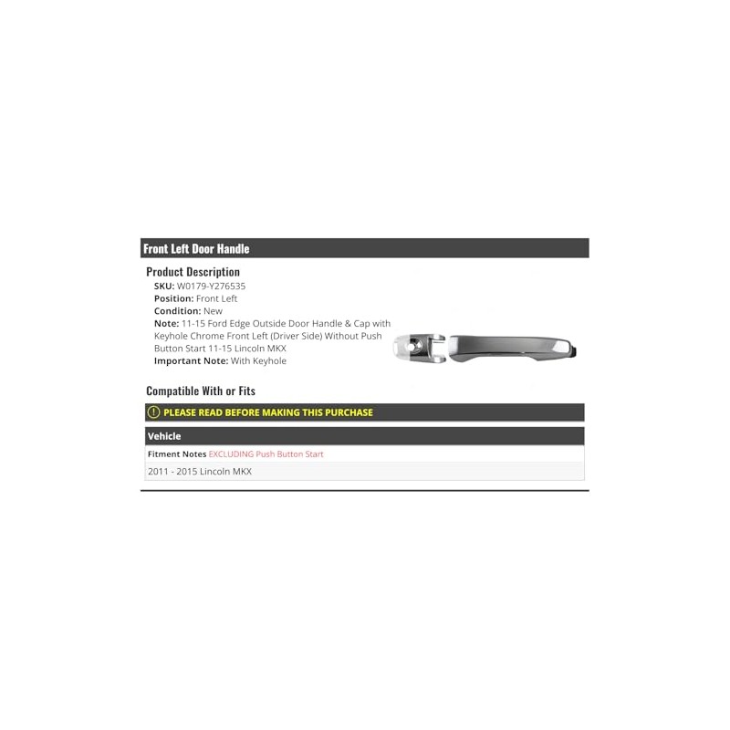 - Compatible with or fits: 2011 - 2015 Lincoln MKX - without Push Button Start