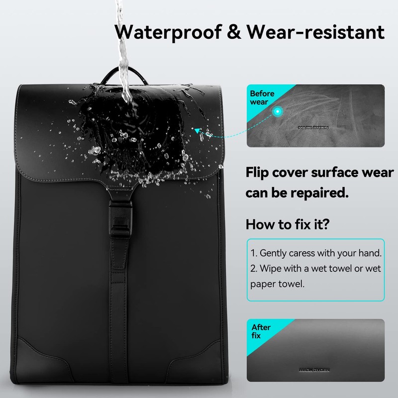 - ▶ Warm Tips: The business backpack is used in the process, if the flip cover surface wear, please do not worry, it can be repaired. The solutions are as follows: 1 Gently caress with your hand. 2 Wipe with a wet towel or wet paper towel. According to the above two methods, the surface can become smooth.