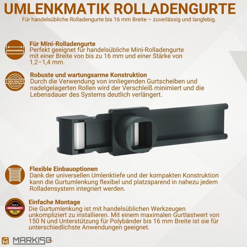 markiso® Umlenkmatik roller shutter belt deflection, belt deflection for mini belts up to 16 mm, 1 piece