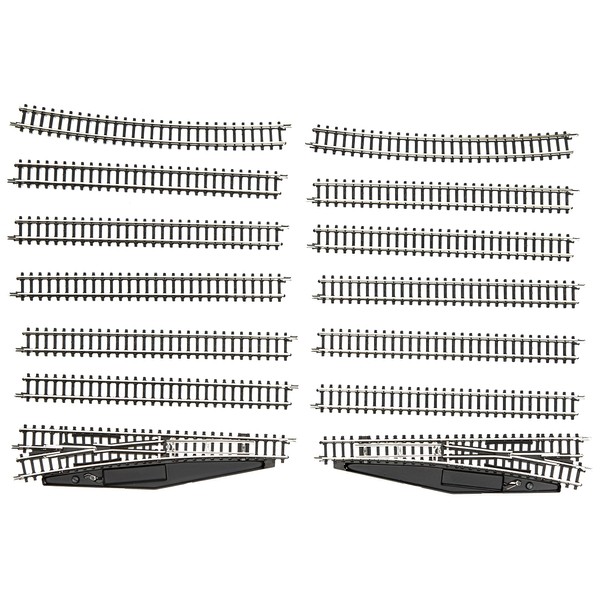 Add more length and passing siding to your basic oval with this set. Increase overall size to 21 16 inches to 42 16 inches Includes one each right and left hand turnouts, ten straight tracks, two curves and instructions