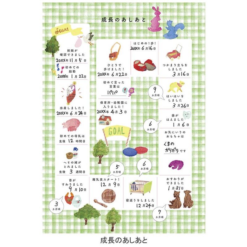 - A nursery diary with cute illustrations. In addition to growth records from birth to 1 year old, there are also pages to keep memories with your baby
