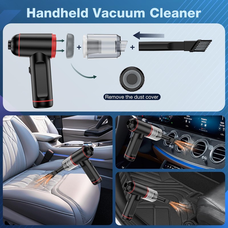 - Compressed Air Duster, Pump & Vacuum Cleaner: MARLALL air duster has blowing, pumping and vacuuming function, can meet a variety of scenarios for use. The function of the vacuum cleaner collector makes it effortlessly suck dust, debris and pet hair from your car seats, carpets, and crevices. At the other end is a blower that easily blows away dust from keyboards, camera lenses, and pianos; It can also be used to pump up inflatable beds, swimming rings and Beach/yoga ball