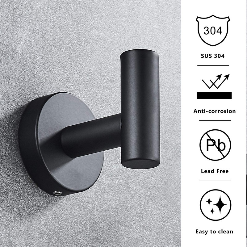 **SPECIFICATIONS** -Brand : Marmolux Acc -Material : SUS304 Stainless Steel -Finish : Matte Black -Installation Method : Wall-mounted **PACKAGE INCLUDES** Towel Hook Hardware Package **ADVANTAGES** 1)Spot-resist and passed 48 hours of salt spray test, this bathroom towel hook could build to resist daily scratches, corrosion and tarnishing 2)Solid metal construction and high quality material, heavy duty hand towel holder is durable for daily use 3)Concealed screws, beautiful and elegant look 4)30-day return guarantee **FRIENDLY TIPS** 1.Use cotton cloth to clean our bathroom accessories with water and wipe slightly, avoid using corrosive or acid cleaner. 2.Regular maintenance, keeps metallic gloss and makes our product like new, decorates home life beautifully. 3.Please confirm product size before placing order to avoid unnecessary trouble.