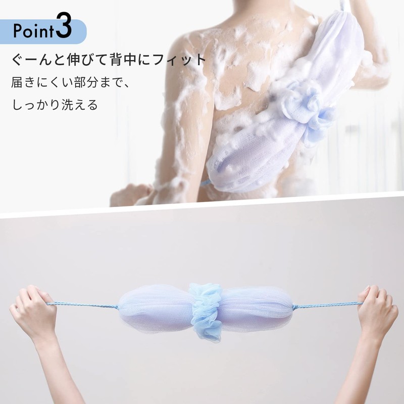 Marna B691B Bubble Factory Double Bubble Body Scrubber, Back Washable, Boing Boing Stretchy, Color: Blue