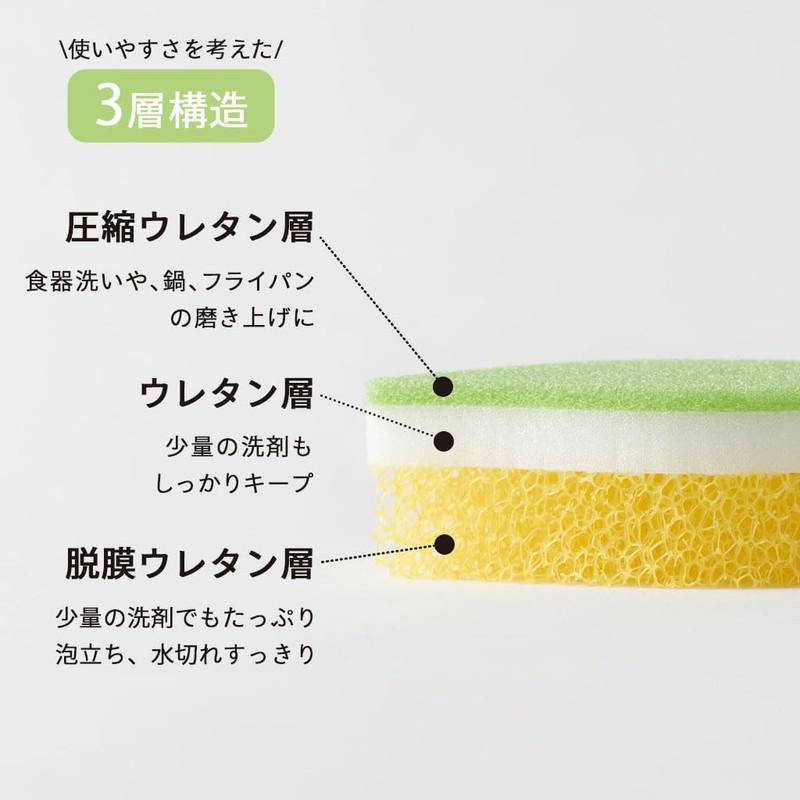 マーナ(MARNA) POCO(ポコ)葉っぱ型スポンジ グリーン 3層構造 キッチンスポンジ K614G 13×7.2×3.5