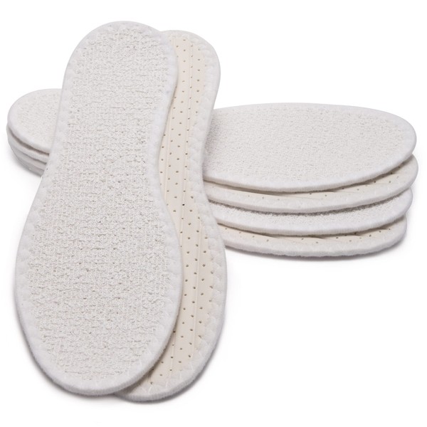Marol 3 Pairs Barefoot Soles, 100% Cotton Terry Towelling with Latex Cushioning, Insoles For Combating Unpleasant Odours and Bacteria, Size 36-47 (UK 4-12) - White - 41