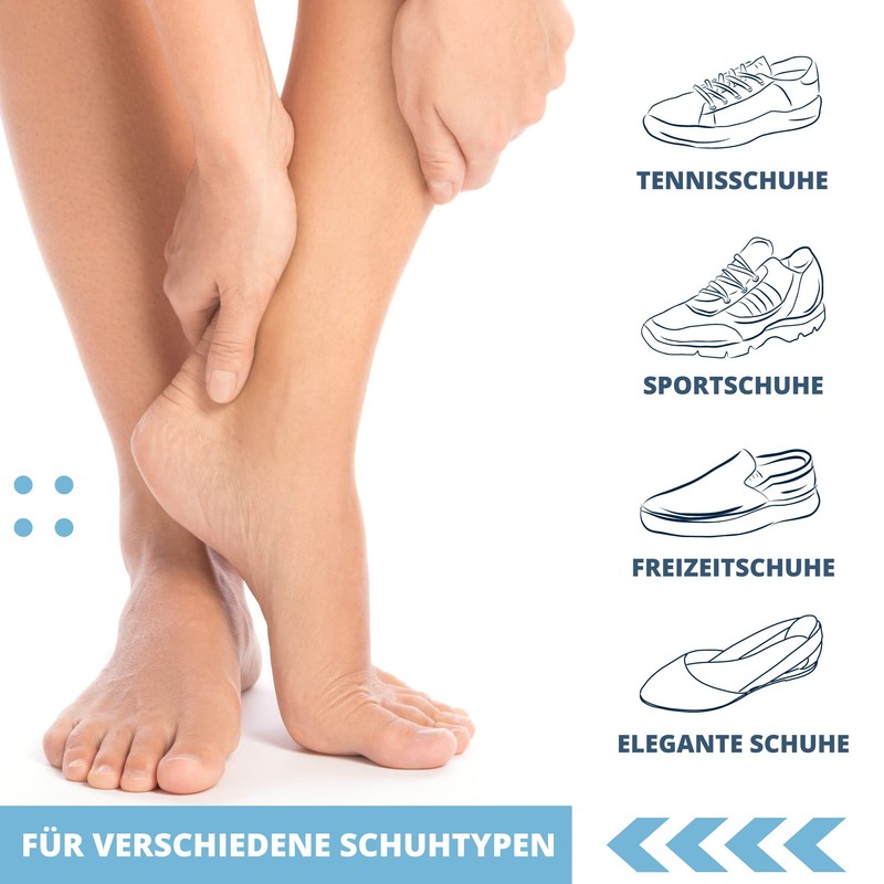 The insoles adapt easily to your shoes. By using cotton piping, the insole is stabilised inside the shoe and there is no slipping when you put on or take off your shoes.
